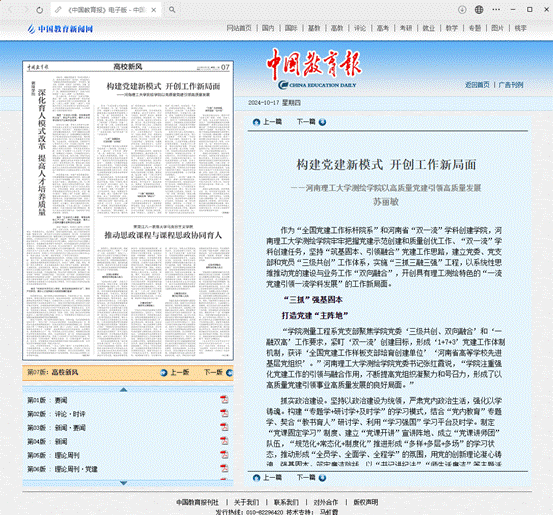 1017日,《中国教育报》以《构建党建新模式 开创工作新局面》为题,聚焦党的建设、人才培养、学科发展、社会服务等工作,全面展示红杏视频 近年来高质量党建引领高质量发展的丰富成果,具体内容如下: