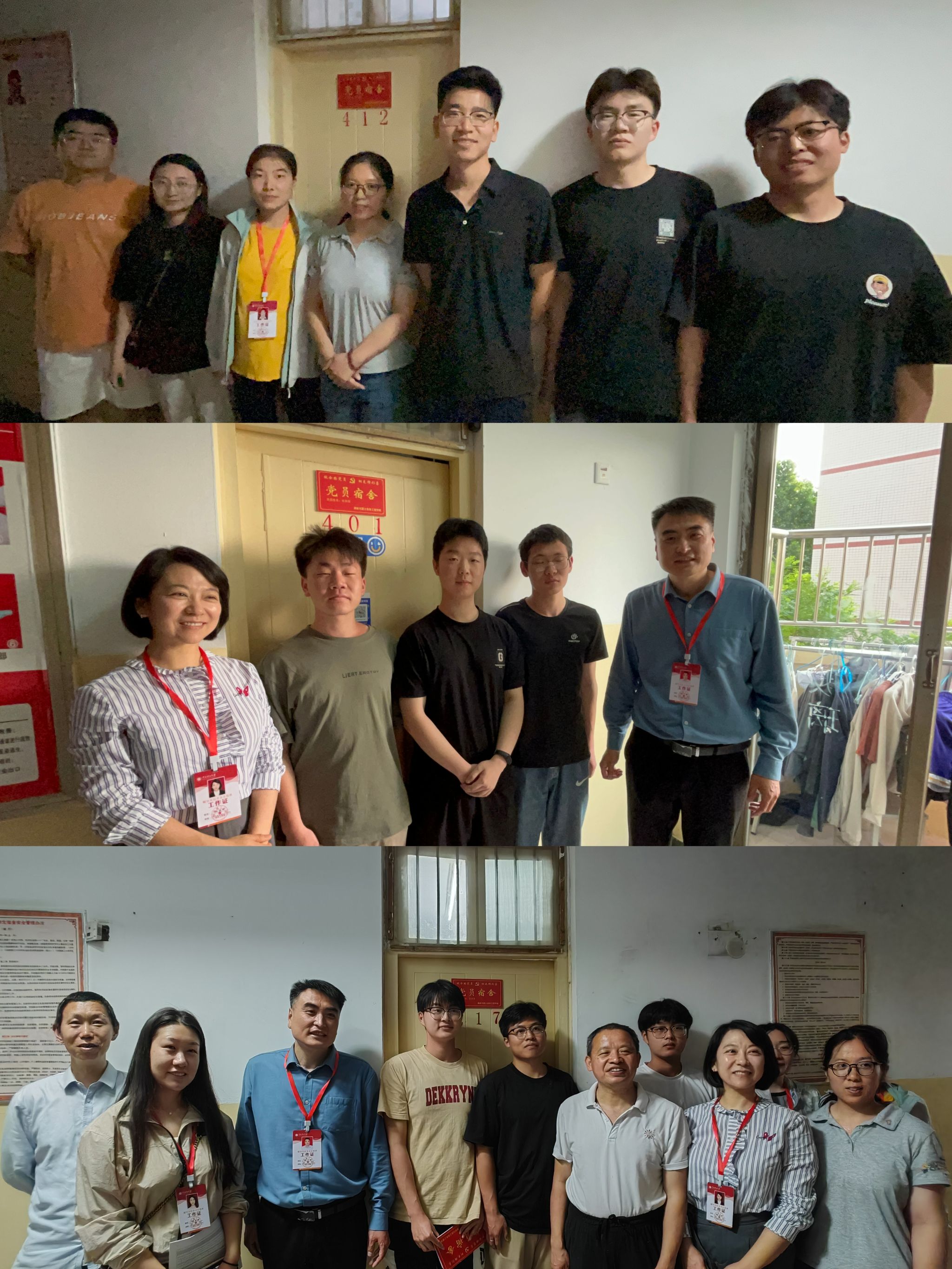 党委副书记郭学鹏带领学院全体辅导员及学业导师代表深入学生宿舍,与学生党员、宿舍成员们就学习、生活、考研、就业等情况进行亲切交流。郭书记强调,“党员宿舍”不仅是荣誉,更是激励。学生党员要始终牢记自己的身份和责任,从学习到工作,从宿舍到班级,以点带面,充分发挥模范带头作用,推进优良院风、学风建设,真正实现“‘寓’红心,‘宿’雅室”的目标。老师们表示,希望学生党员全面提升自身党员素养,亮身份、树形象、做表率,激励大家向优秀学生党员看齐,营造积极向上的宿舍文化氛围。随后,郭书记与辅导员及学业导师为2021级党员宿舍挂牌,并与宿舍成员合影留念。