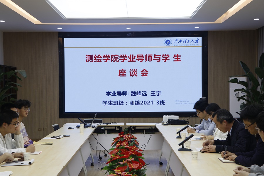 魏峰远院长在学院二楼会议室与指导的测绘类2021级3班学生亲切交流。参加座谈会的有红杏视频
