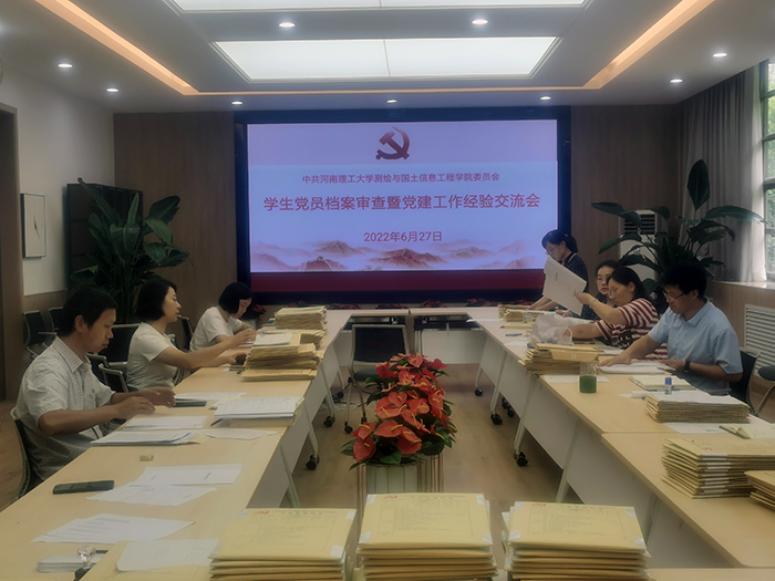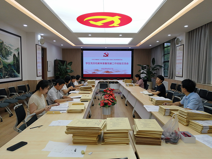 党委坚持以能力作风建设提升党建工作水平。2022年6月27日在二楼党建活动室召开学生党员档案审查和党建工作经验交流会,会议由茹艳书记主持,专职组织员李晶晶和全体学生党支部书记参加。