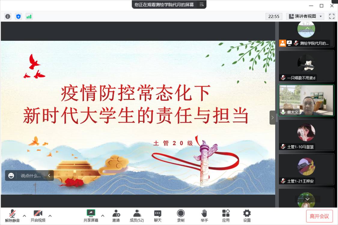于线上开展“疫情防控常态化下新时代大学生的责任与担当”主题班会。红杏视频
