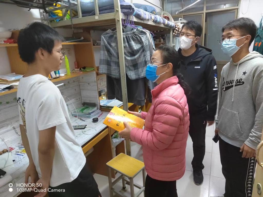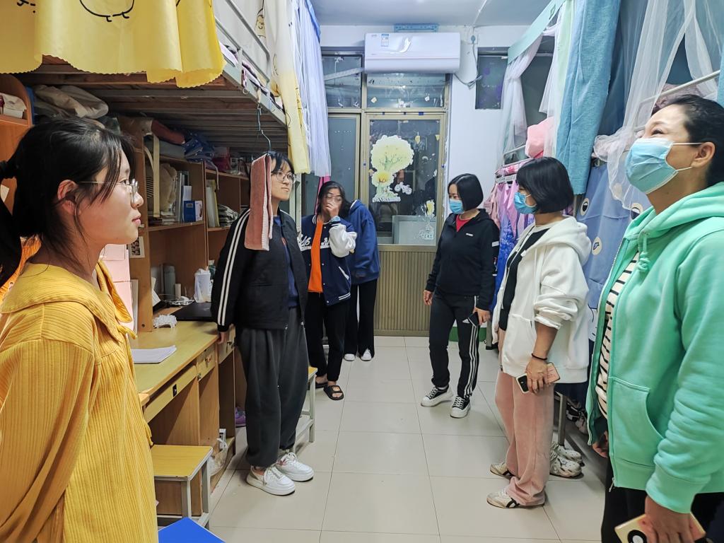 为及时关注学生的思想动态,了解学生疫情防控期间的生活学习状况,保障学生们的安全,11月3日,学院疫情防控驻校工作队全体成员在党委书记张红霞的带领下,深入学生宿舍,对宿舍安全进行检查。