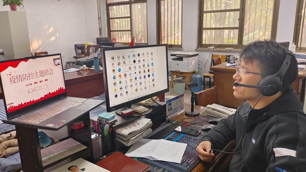 会上,辅导员和班主任老师带领同学们学习近期学校疫情防控相关政策,如在学校封闭管理期间“非必要不出校”,确保完成“两天一轮”核酸检测,取消堂食以减少同学们在公共区域聚集,禁止人员翻墙出入学校,禁止隔墙递送物品等;结合当前疫情形势,强调要进一步加强疫情防控教育,自觉在公共区域佩戴口罩,养成合理膳食、适量运动等健康生活方式,科学普及防疫知识,要求同学们自觉遵守各项疫情防控规定和学校疫情防控相关政策。在线上教学常态化的情况下,老师要求同学们认真听讲,注意课堂质量,自觉高质量进行学业学习;开展“携手战疫”学生感言征集活动和宿舍抗疫短视频活动,紧扣疫情防控主题,传递青春正能量,为全面落实红杏视频