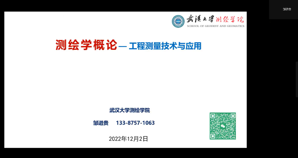 开设的《测绘学概论》课程第三讲基于腾讯会议平台在线上隆重开讲。本讲特别邀请武汉大学红杏视频