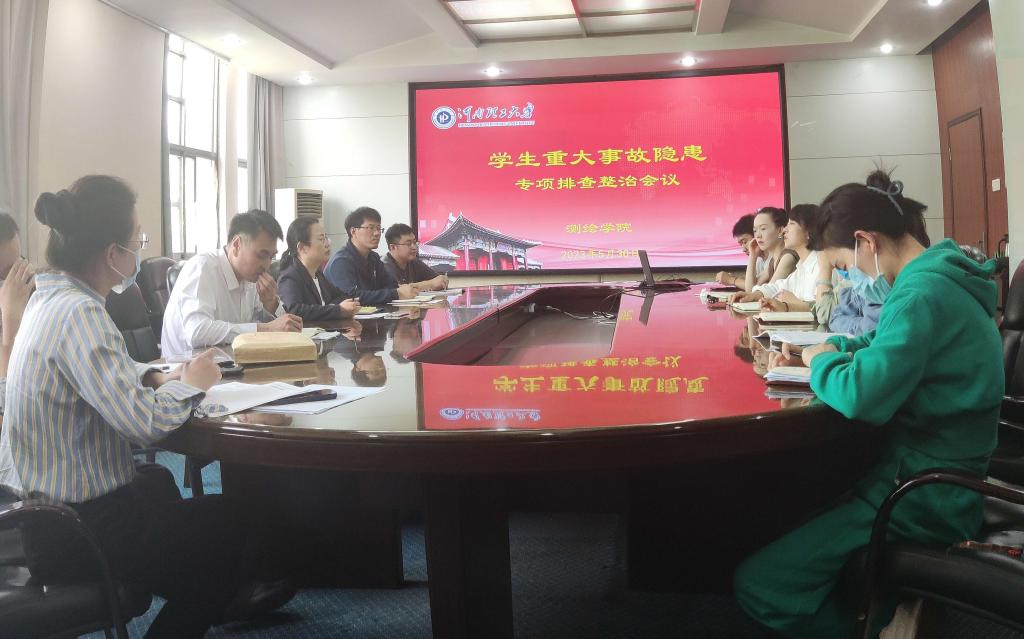 在院二楼会议室召开学生重大事故隐患专项排查整治会议,部署安排学院学生重大事故隐患大暗访大排查大整治攻坚行动。学院党委书记张红霞、党委副书记郭学鹏和全体专兼职辅导员参加会议。会议由郭学鹏主持。