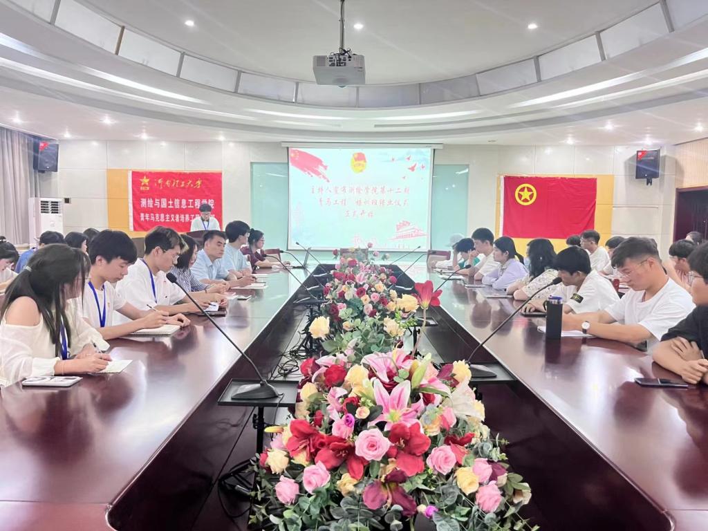 于院楼101会议室举行第十二期“青马工程”培训班结业仪式。学院党委副书记郭学鹏、团委书记李静、第十二届“青马工程”培训班学员及团委综合办公室全体成员参加仪式,团委秘书处曾子俊主持。