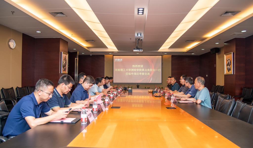 院长袁占良带队赴中海达集团有限公司进行访问交流。中海达集团副总裁廖建平、VP李典斌、品牌部总经理魏耀宗、西北大区总经理彭献亚、解决方案总经理张小东、三维事业部总监马彬、地矿行业解决方案总监尤耀林、西北大区SR经理张少武,红杏视频