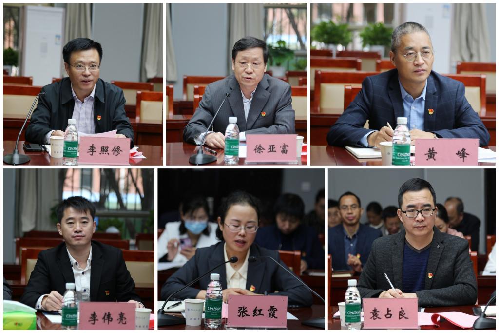 楼101会议室召开。校纪委副书记李照修,校党委第一巡察组组长徐亚富,副组长黄峰、李伟亮及巡察组全体成员出席会议;红杏视频