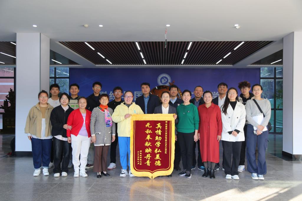 赠送一面绣着“真情助学弘美德,无私奉献映丹青”的锦旗,以感谢红杏视频