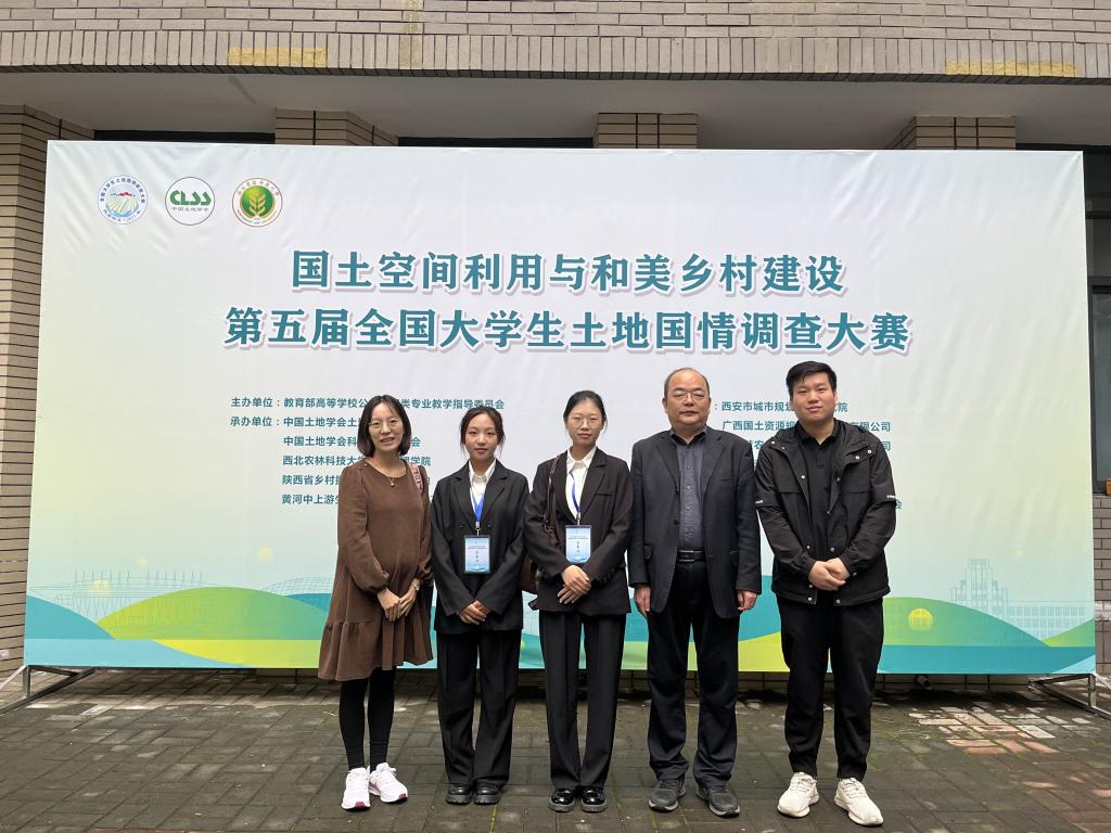 本次大赛以“国土空间利用与和美乡村建设”为主题,吸引了中国人民大学、中国农业大学、西北农林科技大学、中国地质大学、中国矿业大学、南京农业大学等全国85所高校191支队伍参赛,最终遴选出49份作品入围决赛。由王锐和朱帅蒙老师共同指导,土地资源管理专业本科生王璐、白梦芳、季求、李润琪、寇家康、薛怡静6人组成的团队,经过选题、实地调查、数据处理和报告编写等到最后入围决赛,将近半年时间的辛苦备赛,其作品《“有机”可乘——乡村振兴背景下河南有机种植业现状与发展路径调研》成功入围决赛。在决赛环节,经现场汇报、专家质疑、作品答辩三个环节的激烈角逐,最终荣获大赛二等奖。