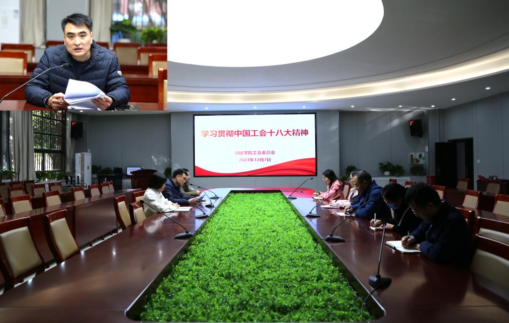 工会在学院一楼会议室召开工作会议,传达学习中国工会第十八次全国代表大会的精神。学院党委副书记兼工会主席郭学鹏主持会议,全体工会委员和各工会小组长参加学习。