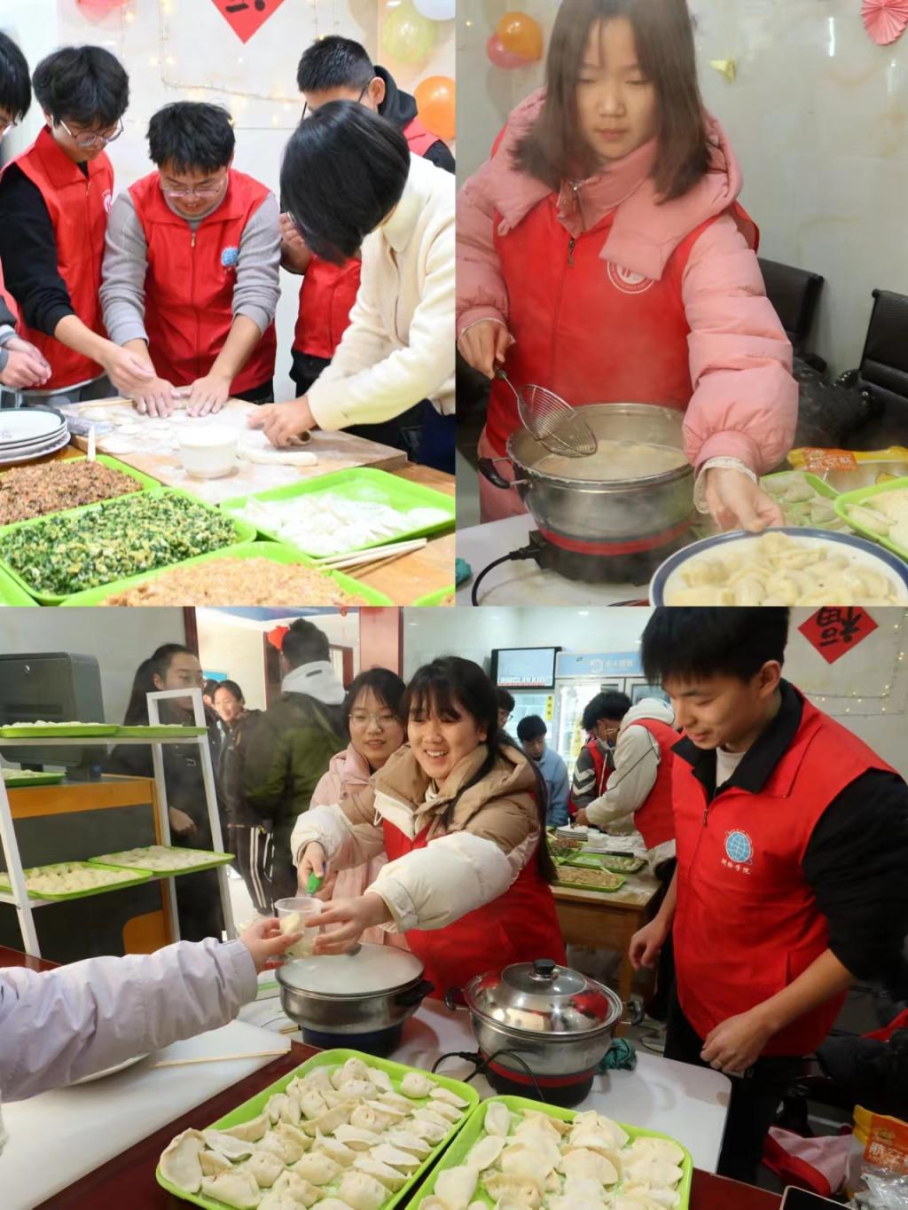 活动前一天,志愿者们便准备好了包饺子所需的面粉,馅料等,将活动现场布置得井井有条。12月22日上午,迎着冬日暖阳,一进梅三公寓大门,饺子的香气便裹挟着过节的喜气迎面涌来。“饺子皮擀薄一点,好吃!”“多包几个肉馅的,我喜欢吃肉!”活动开始之后,同学们的兴奋的声音不绝于耳,大家分工明确,卷起衣袖充满热情地擀面皮,包出了各式各样的饺子。随着躺在托盘中的饺子越来越多,锅中的水也开始翻滚。一个个白胖的饺子逐个跳入滚烫的锅中,蒸腾的水汽使冬日中的梅三大厅变得愈发温暖。饺子出锅后,每位来到现场参与活动的同学都吃到了热气腾腾的饺子,感受到了家的温馨。志愿者还为考研学子、宿管阿姨们以及老师们等送去了饺子,带上了这份冬日里的温暖,送上了来自测绘青协的祝福。随着最后一锅饺子出锅,活动也迎来了尾声,志愿者们认真打扫了活动现场的卫生,保证了宿舍大厅的干净整洁。