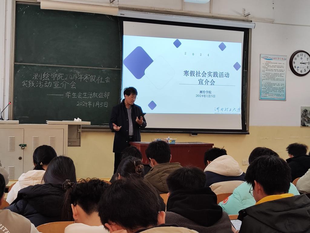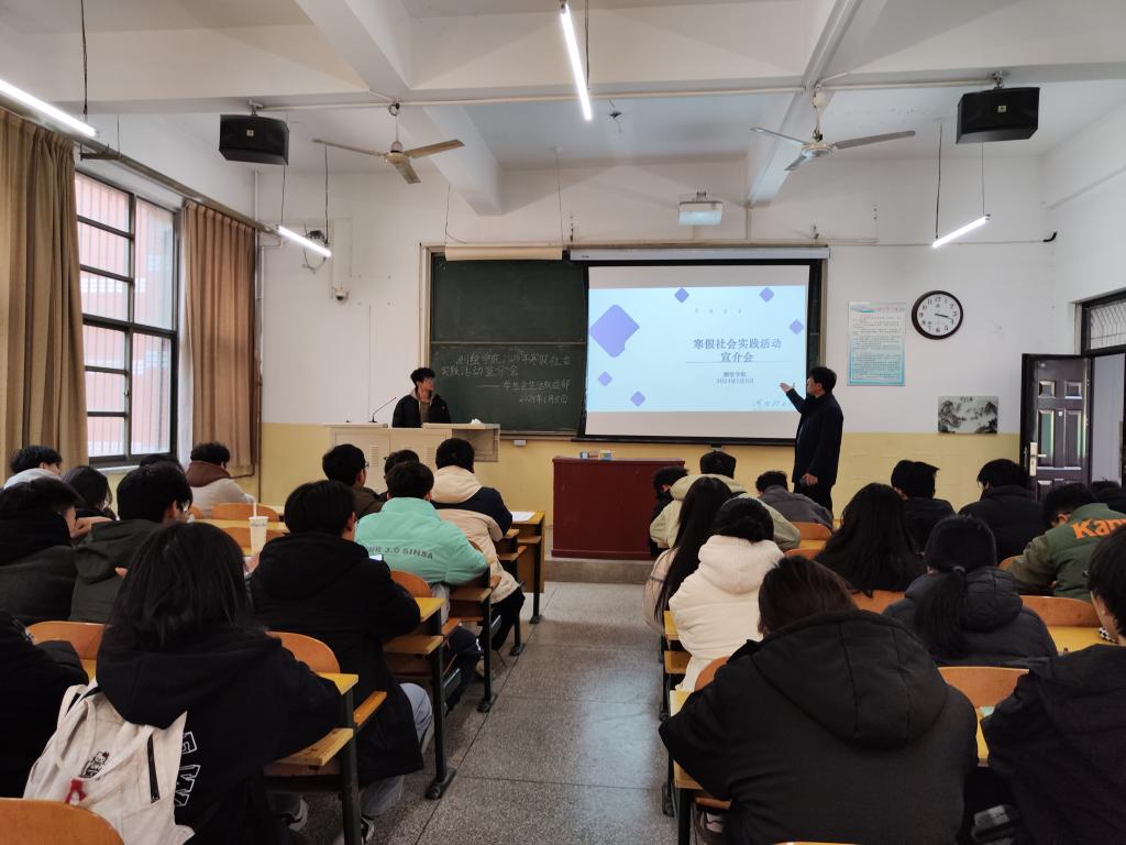 于院楼102教室举办了2024年寒假社会实践活动宣介会。学院团委书记丰习才、各班级班长、组织委员及学生代表共70余人参加。