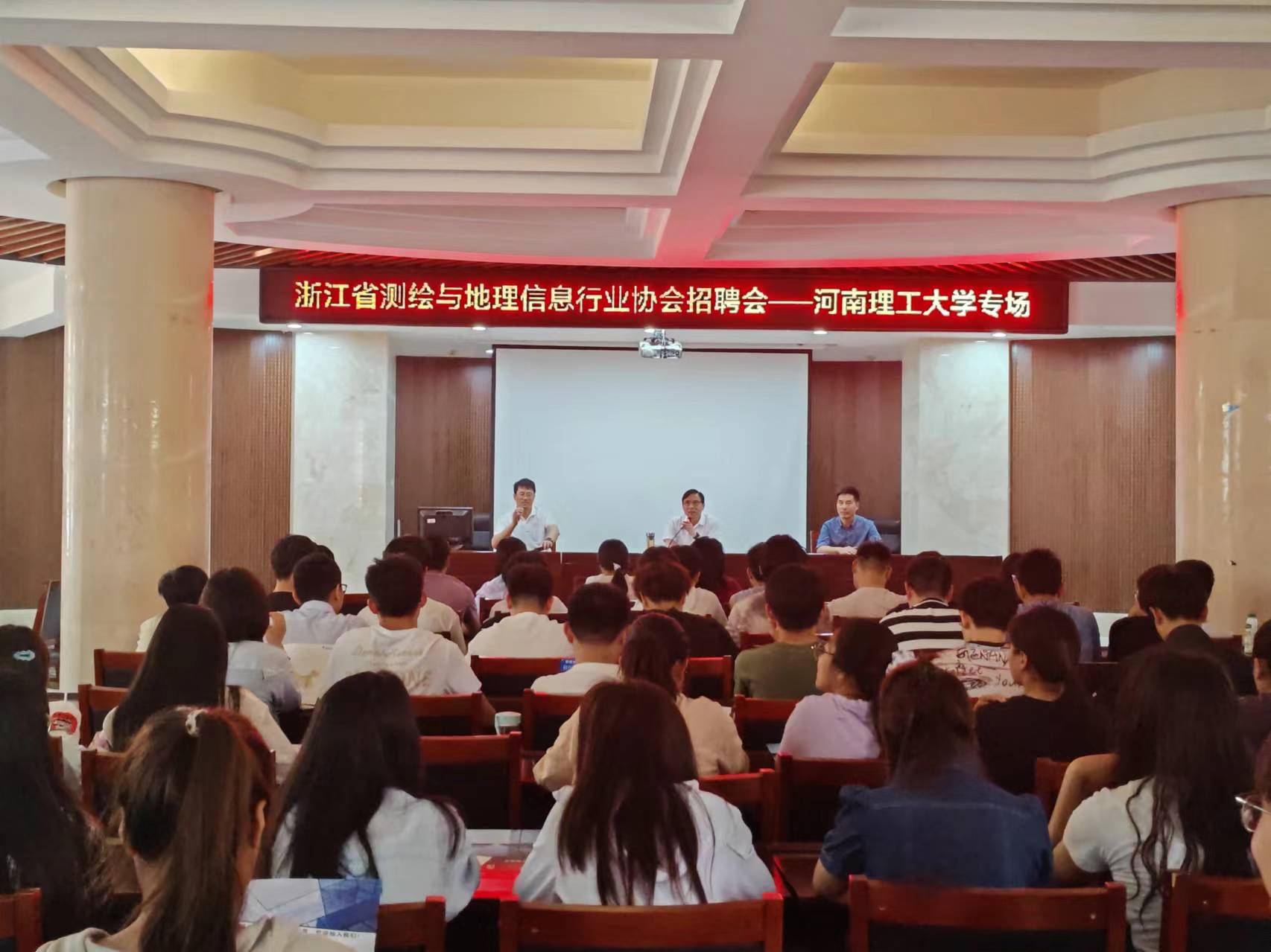 联合浙江省测绘与地理信息行业协会以及浙江10家测绘行业知名企业于大学生活动中心一楼招聘大厅召开专场招聘会。本次会议参会人员有浙江省测绘与地理信息行业协会会长吴红伟、浙江地区10家测绘行业知名企业招聘经理以及2024届毕业生代表,院团委书记丰习才主持会议。