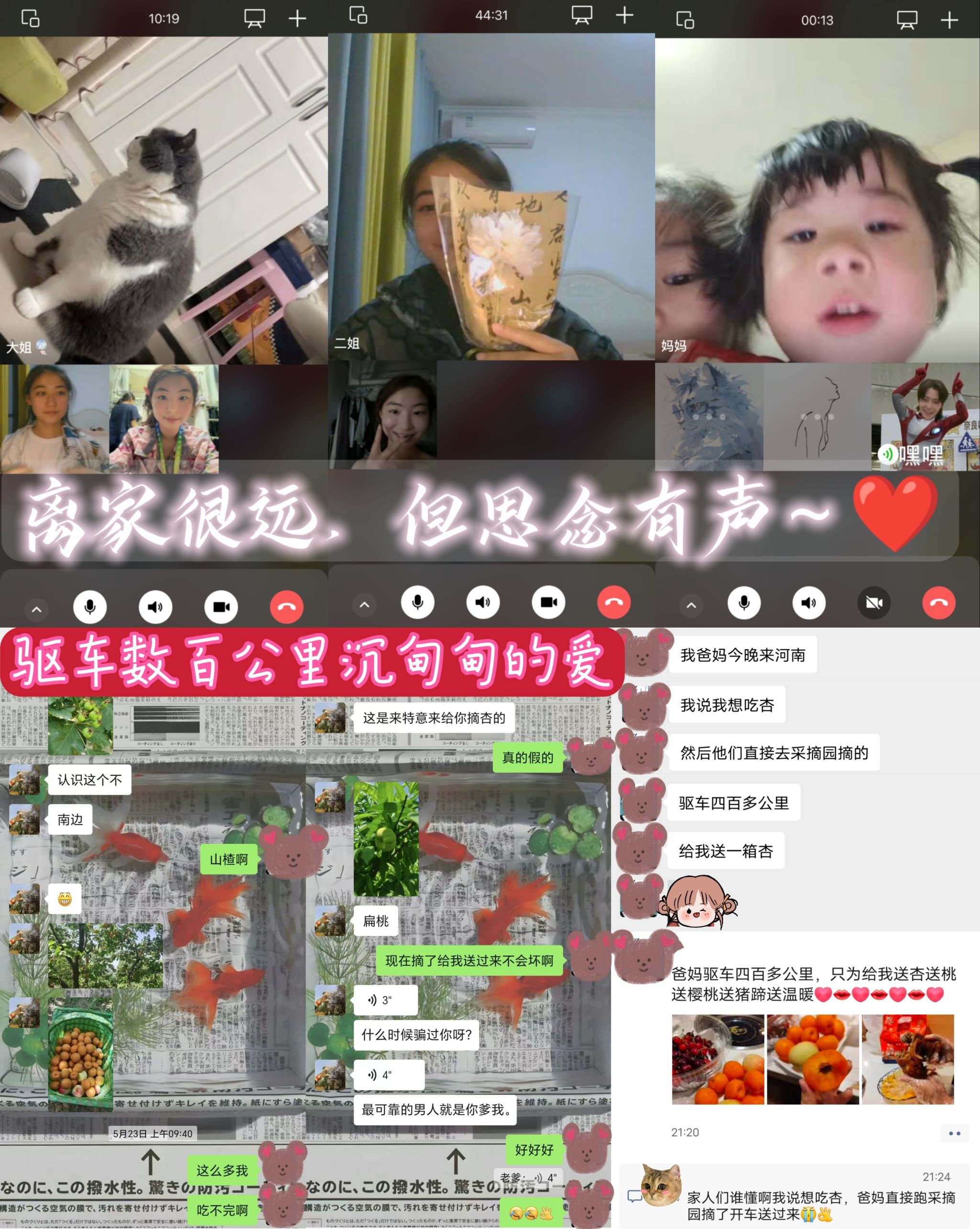 班长联席会举办了以“亲情沟通,共话成长”为主题的线上活动,通过线上交流的方式,倡导家长与学生沟通,增进亲情关系,促进学生心理健康。此次活动通过征集同学们与父母视频聊天的图片及聊天记录截图,分享彼此的生活点滴,进一步强化家校协同育人。