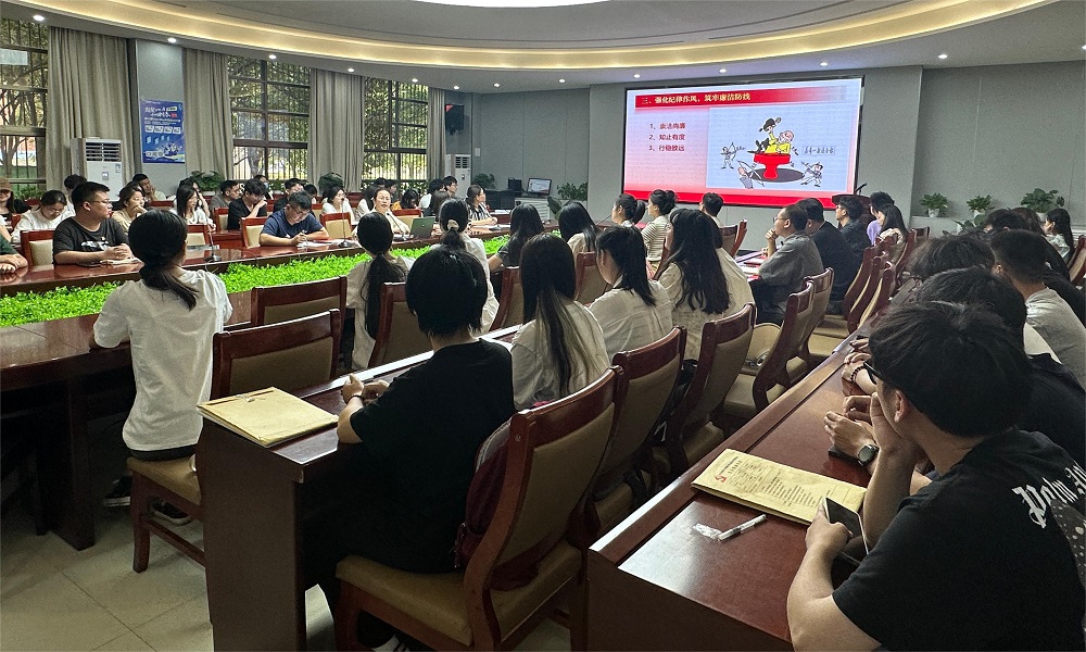 党委在一楼会议室召开2024届毕业生党员离校教育活动,学院党委书记张红霞、组织员李晶晶、毕业生辅导员代表及120余名毕业生党员参加,活动由李晶晶主持。