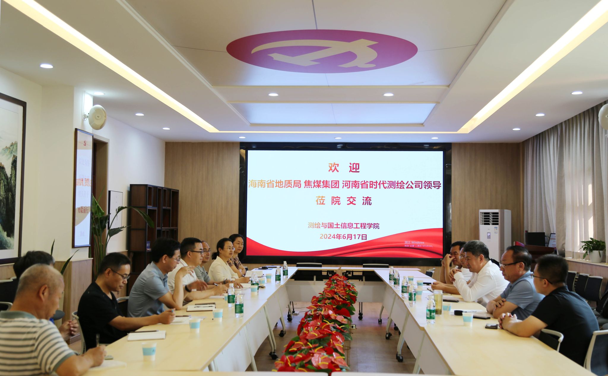 6月17日下午,海南省地质局局长苏金明(矿测85级校友)、地矿处处长杨朝云,河南省时代测绘公司总经理周洪亮(矿测85级校友)、焦煤集团李润波(矿测85级校友)等一行5人莅院交流。座谈会在红杏视频
