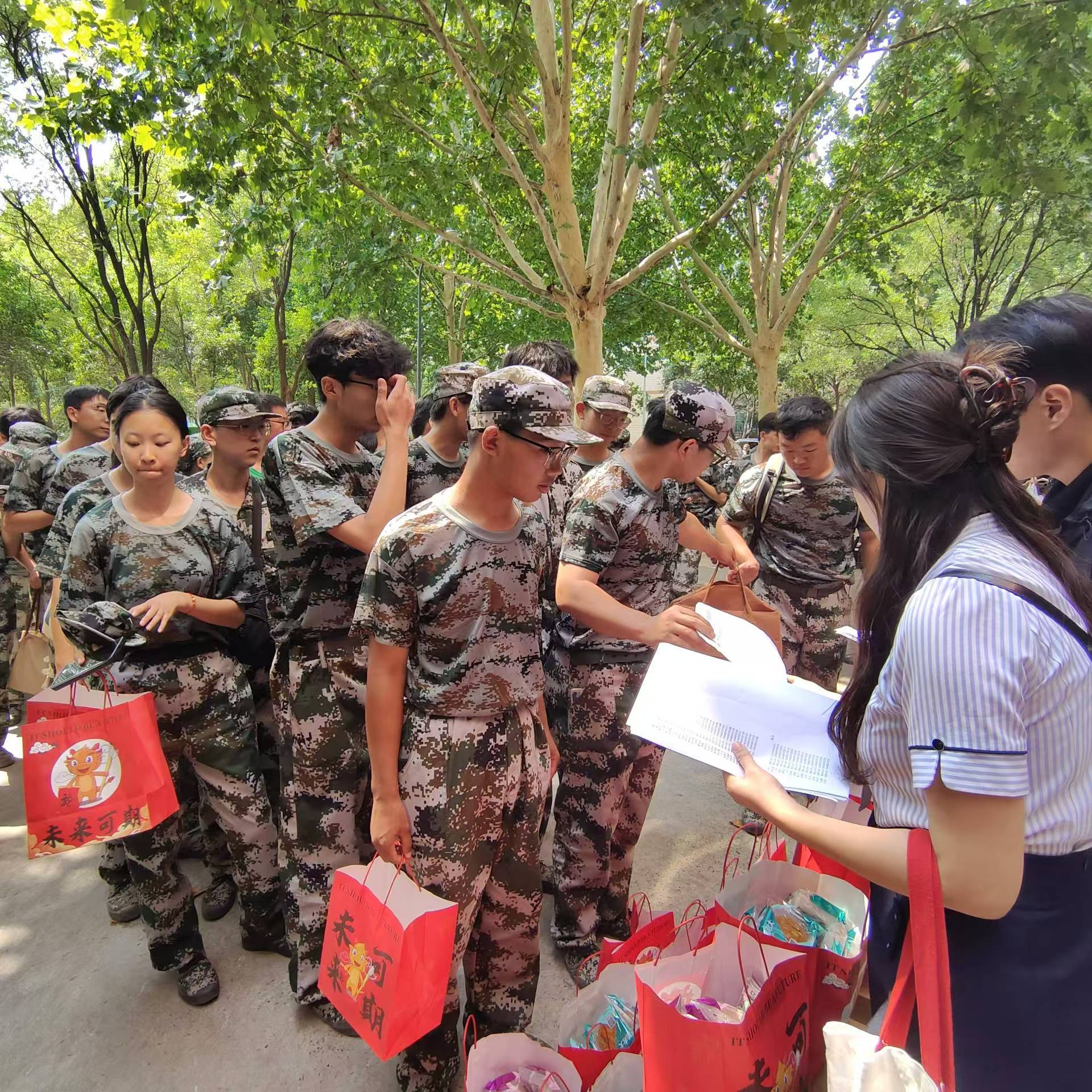 在梅园3号宿舍楼下,开展“军训淬炼青春,中秋慰问暖心”活动,该院党委副书记王雷霞,带领辅导员为2024级军训新生进行中秋慰问。