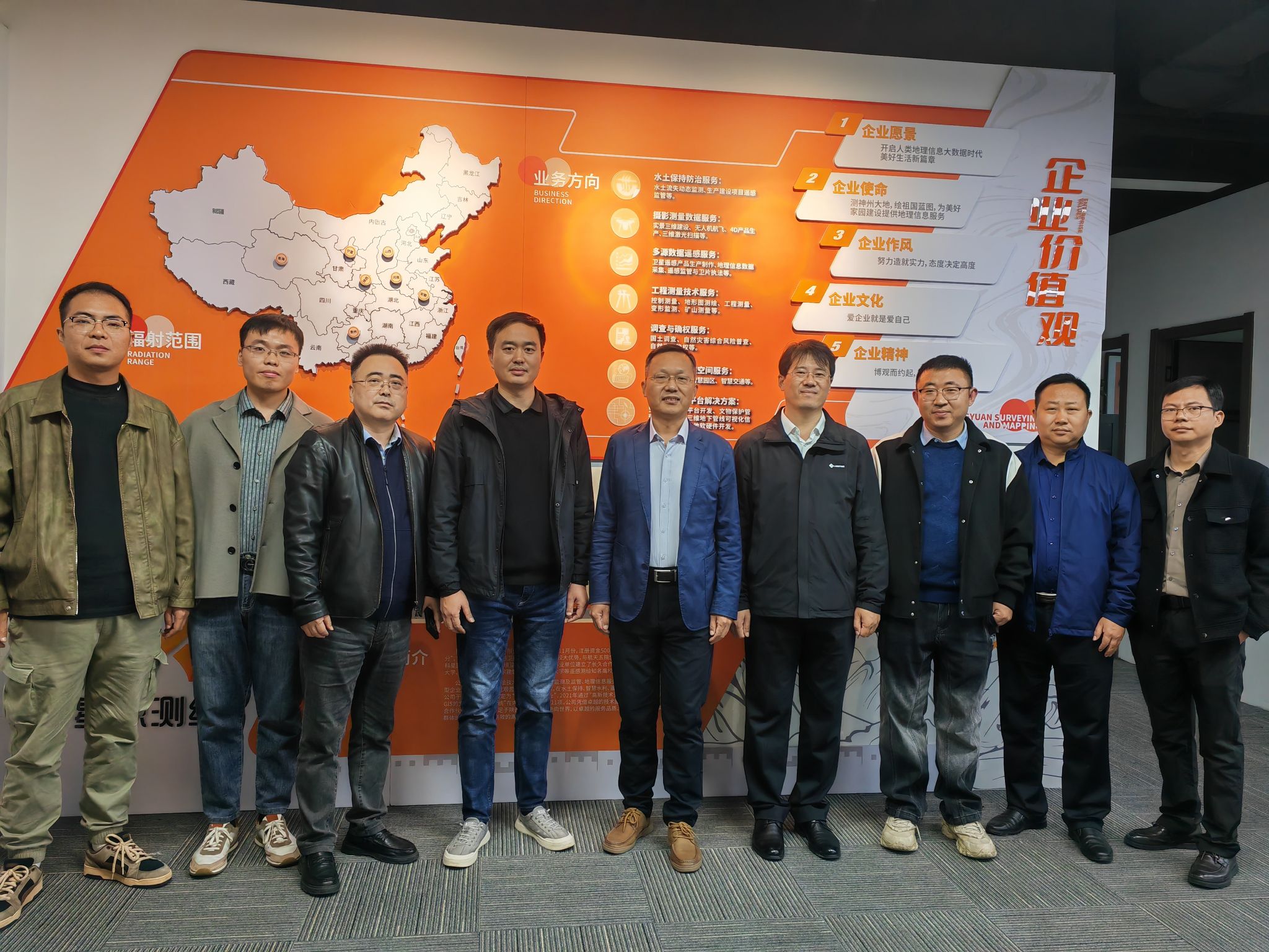 副院长何荣一行前往陕西星原测绘科技有限公司进行“访企拓岗”活动。航天宏图信息技术股份有限公司西安公司副总经理薄一民,中科星图地球副总裁兼智脑引擎研发中心总经理马斅良,西安中科星云空间信息研究院院长、2002级测绘工程校友袁荣才,机械工业勘察设计研究院有限公司2007级测绘工程校友范新华出席活动,会议由陕西星原测绘科技有限公司总经理、2008级测绘工程校友王政主持。