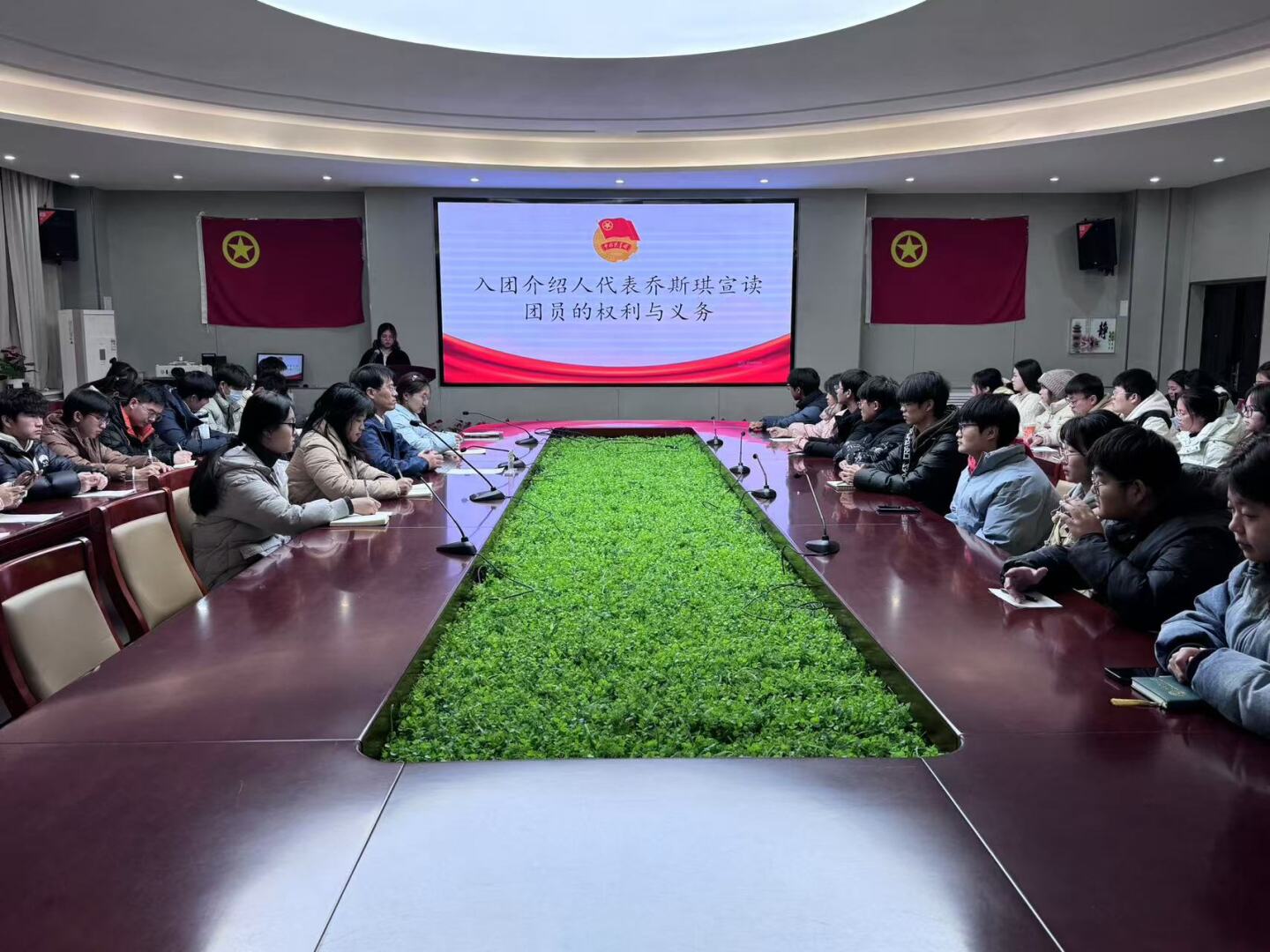 为响应团员发展工作要求,激发新团员光荣感和自豪感,增强新团员对团组织的认同感和归属感,1219日下午,红杏视频 团委在院楼101会议室举行红杏视频 2024年发展新团员第二期入团仪式。红杏视频 团委书记丰习才、2024年第二期新团员、团委综合办公室全体成员参加会议,会议由秘书处石芳溪主持。