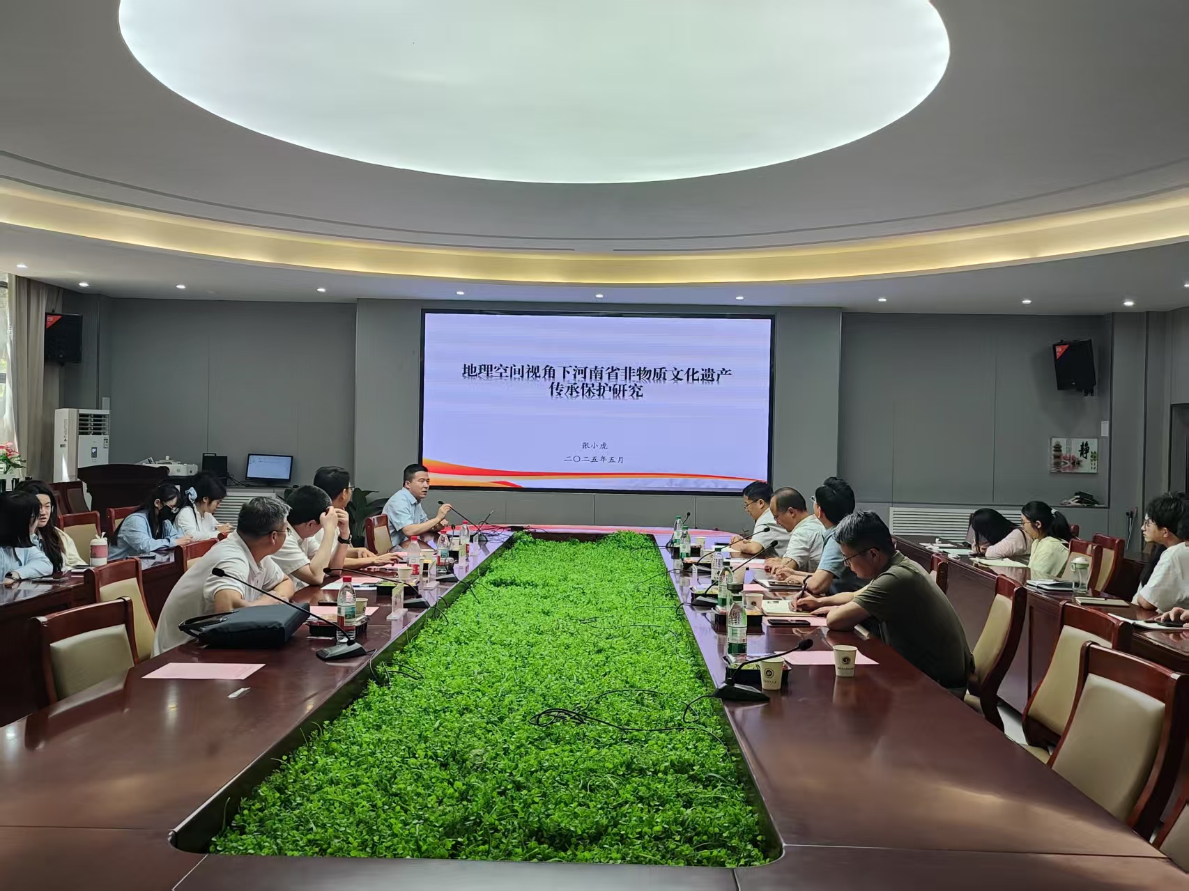 副院长柴华彬致辞并介绍了学院整体情况。黄河流域研究中心主任乔旭宁详细介绍了中心在流域资源保护与城乡高质量发展领域的研究成果及未来规划。学术交流过程中,河南省科学院地理研究所所长鲁鹏做了题目为“环境考古中的古代人地观”的学术报告,从历史视角解析了黄淮流域人地关系的演变,强调环境考古对现代自然资源管理的启示;信阳师范大学地理科学学院副院长颜俊围绕“任务驱动式科研让流域平台‘动’起来”进行交流,提出通过任务导向的科研模式激发流域监测平台的协同创新活力,强调了流域的重要性、待研性和话语权;许昌学院地理与空间信息学院院长闫慧的报告“淮河流域地表水硼污染及源解析”,结合实地数据揭示淮河流域地表水硼污染成因,为流域水环境治理提供了科学依据;洛阳师范学院地理与旅游学院副院长张小虎聚焦“地理空间视角下河南省非物质文化遗产传承保护研究”主题,探讨了地理信息技术在文化遗产保护中的应用潜力。最后,与会专家围绕科研协同平台建设、跨学科合作机制与数据共享平台搭建及人才培养等内容进行了深入研讨。