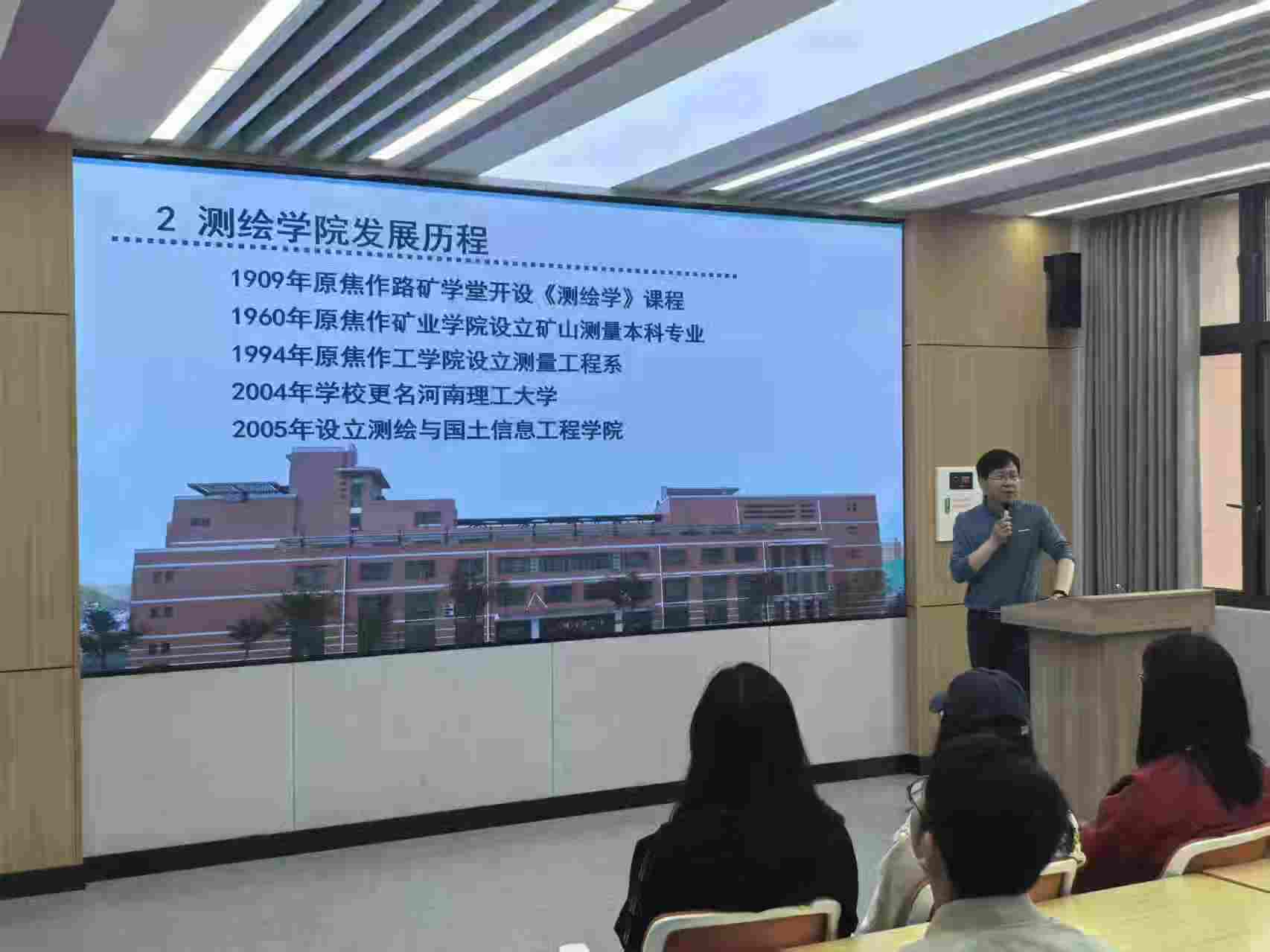 在许昌学院的宣讲中,王宇聚焦研究生招生的具体政策与实践环节,为同学们进行了深入解读。他详细介绍了学院的硕士、博士招生专业设置、主要研究方向、报考条件、报名流程以及往年招录比等相关信息,并向同学们介绍了测绘类专业毕业生的就业前景和职业发展。