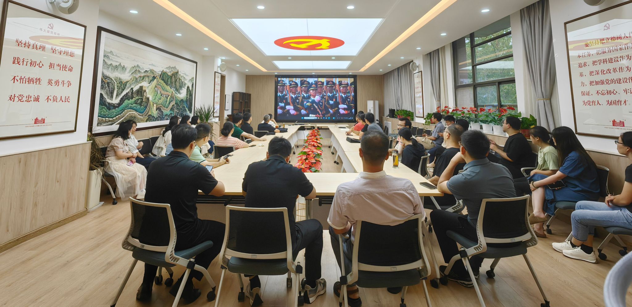 在221会议室组织教职工集中观看了“纪念中国人民抗日战争暨世界反法西斯战争胜利80周年大会”直播。学院领导班子成员与教职工一同观看了大会盛况。