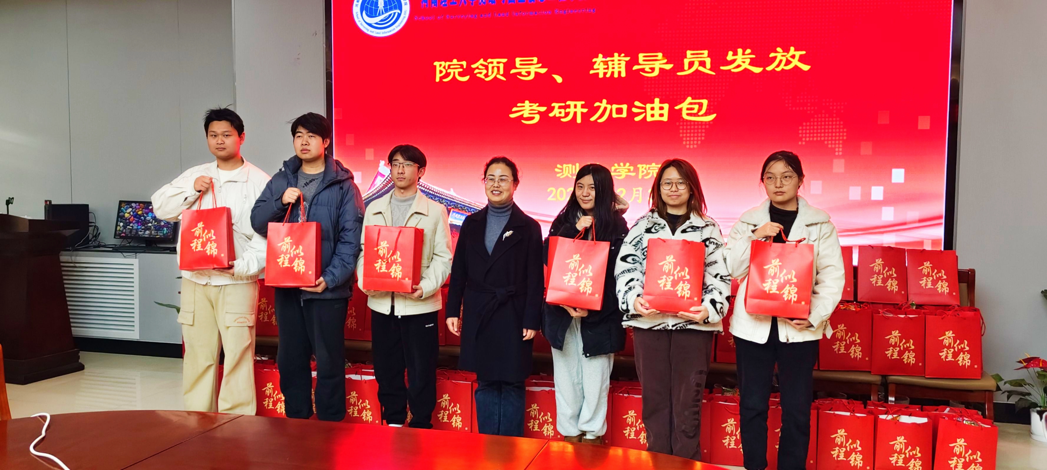 在101会议室举办“研途有你,一战成硕”考研加油包发放活动。学院党委书记张红霞、院长袁占良等领导班子成员携手考研、保研学生代表与备考学子面对面交流,以真挚关怀与殷切祝福为青春追梦路保驾护航,让冲刺阶段的备考之路暖意融融。