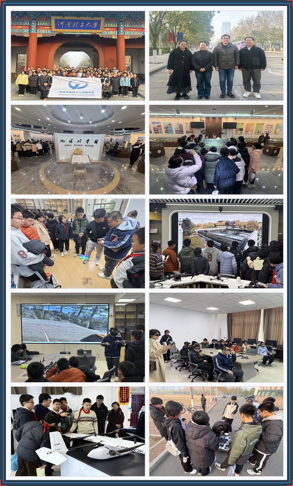 活动期间,在学院相关负责人员与科研团队的专业引导下,依次参访了5个重点实验室与专业场馆。在无人机研发中心,团队负责人现场展示了无人机技术的前沿应用;在河南省实景三维地理空间信息工程研究中心,学生们佩戴3D眼镜沉浸式体验了三维地理信息成果;在北斗+智能定位导航实验室,工作人员指导学生实际操作无人驾驶车辆,近距离感受智能导航技术;在时空大数据获取技术及装备实验室,师生们认真听取了“河南理工一号”卫星及无人机遥感平台的介绍;在矿区地表灾害智能监测与防控实验室,大致了解了学院在矿区灾害监测领域所取得的科研成果;在资环学院的地球科学馆,讲解员生动讲解了地球演化历程与地质标本。校园里大学生的多彩生活,实验室里先进的实验设备、丰硕的科研成果让同学们欣喜不已,沉浸其中。