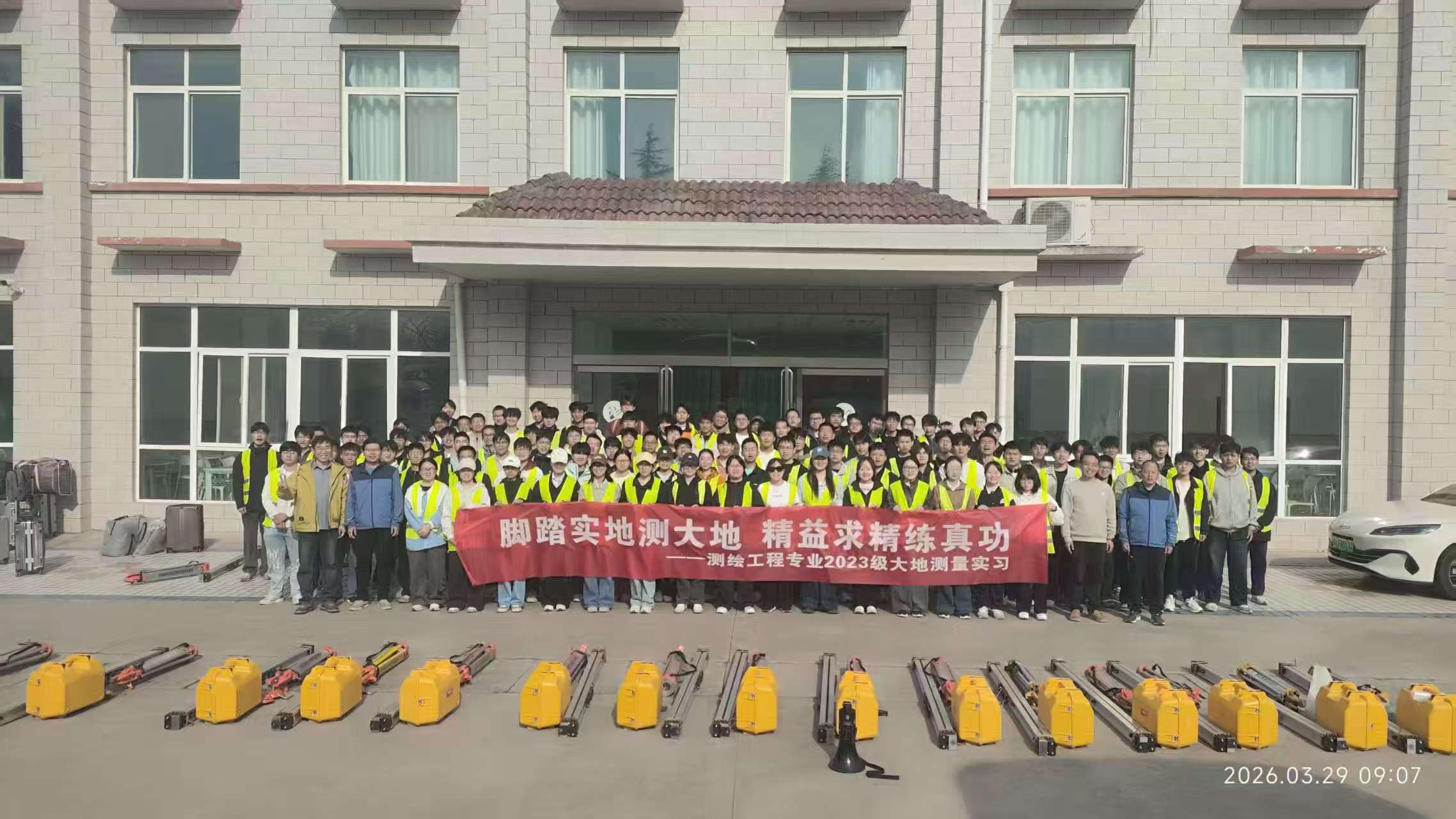 小浪底实训基地,开展相对重力测量与二等水准测量专项实习。在测绘工程系主任连增增等8位专业教师的全程指导下,全体同学顺利完成各项实习任务。