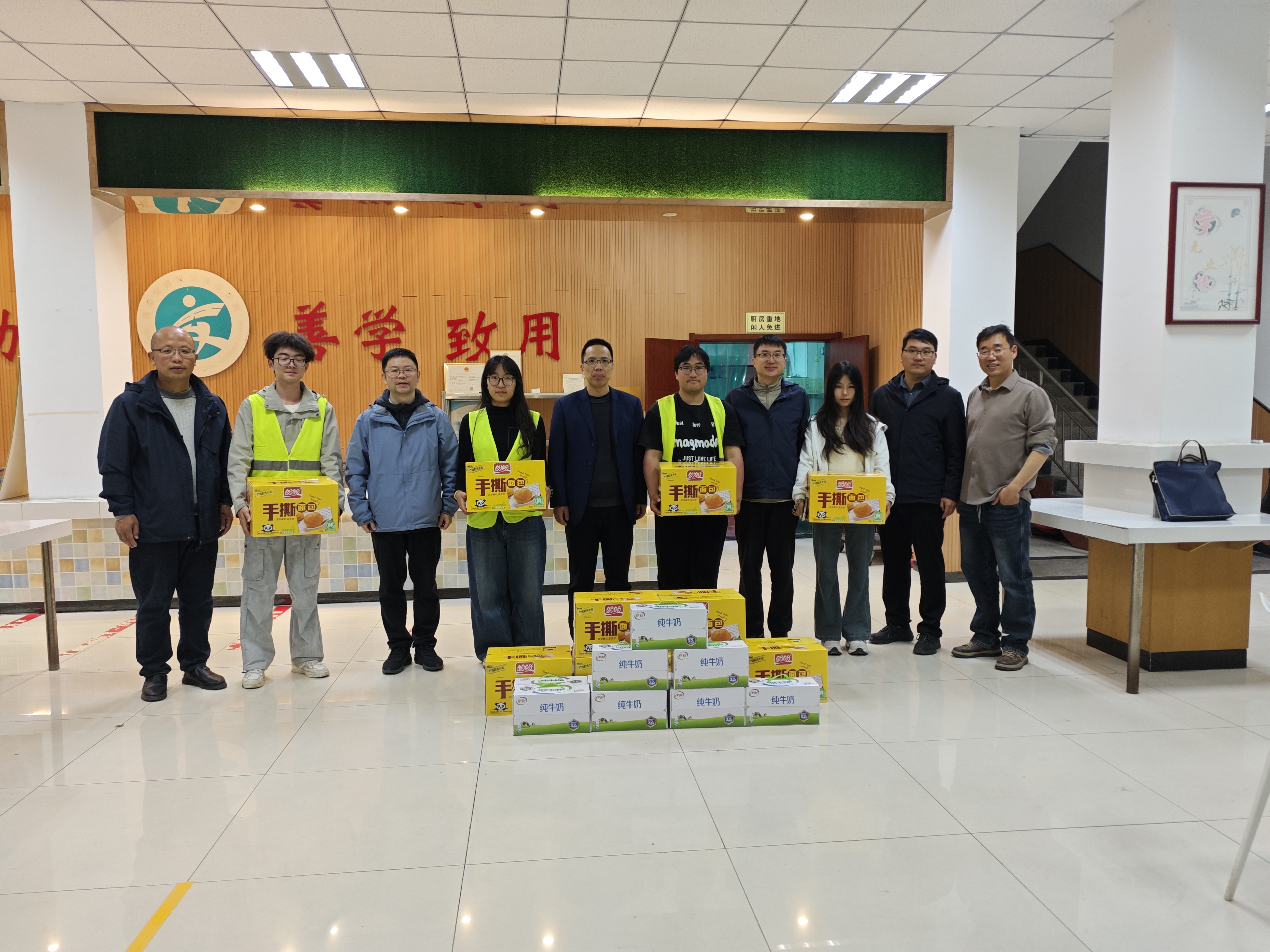 随后,学院领导为实习师生送上牛奶、面包等慰问品,暖心的关怀让大家倍感温暖。同学们纷纷表示,将不负学院期望,以饱满的热情投入后续实训,扎实掌握测绘专业技能,努力成长为兼具理论功底与实践能力的测绘专业人才。慰问活动为实习师生送去了温暖与鼓励,增进了师生的交流与互动,进一步激发了大家的实训热情与学习动力。