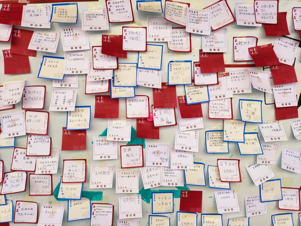 本次“助力高考,梦想启航”活动形式多样,学生参与热情高涨。活动现场气氛热烈,选择“抽题答题”的理工学子以大学生的角度录制关于高考的解惑视频,并送上鼓励与祝福;选择“手写祝福”的同学写下对高三学子的叮嘱与期待,并将其贴到高考加油祝福板上;选择“助力高考合照”的同学笑容明朗,与助力牌合影,以笑容表达对高考生的祝福,展示了理工学子阳光健康的形象。大家积极参与活动,在表达对高考生的美好祝愿的同时,也获得了自己心仪的小礼品。活动结束后,由宣传部门制作总结视频,并通过官方QQ或微信等途径将祝福与期待送给高考生。