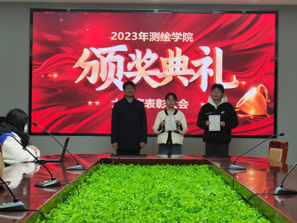 会议伊始,大会主持人张思语宣读了竞赛获奖人员名单,本年度大学生英语竞赛中,参赛学生覆盖面广,成绩喜人,其中姜言润等19位同学获得了本次英语竞赛个人奖,自环2102、地信2203两个班级获得了本次英语竞赛班级奖。表彰会上,丰习才进行讲话发言。首先,丰习才主任对获奖同学表示热烈的祝贺和诚挚的祝福。接着,他指出,本次颁奖活动旨在树立榜样、激励先进,营造良好的学习氛围,鼓励全体同学再接再厉,不局限于当前的成绩,要向着更高的目标迈进。同时,他表达了对明年英语竞赛的美好祝愿,并期待测绘学子奋楫扬帆,再创佳绩。最后,丰习才分别为获得个人奖项的学生和获得班级荣誉的学生代表颁发荣誉证书,并合照留影。