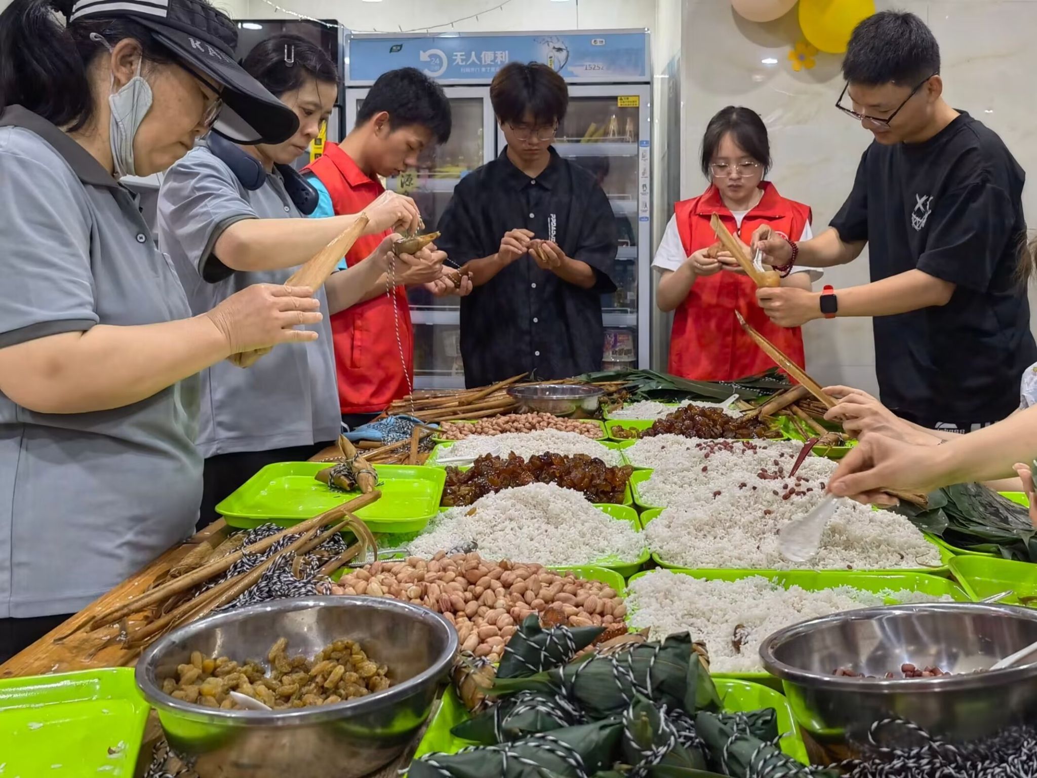 活动当天,宿管阿姨和志愿者们早早地就开始了准备工作:洗粽叶、泡糯米、布置场地,无一不体现出他们的认真和热情。午后,一份份粽子连同水果化作温暖的礼物,分发给路过的同学。对于即将毕业的学生们来说,这份祝福更是让他们感受到了浓浓的校园情谊,深深感受到红杏视频