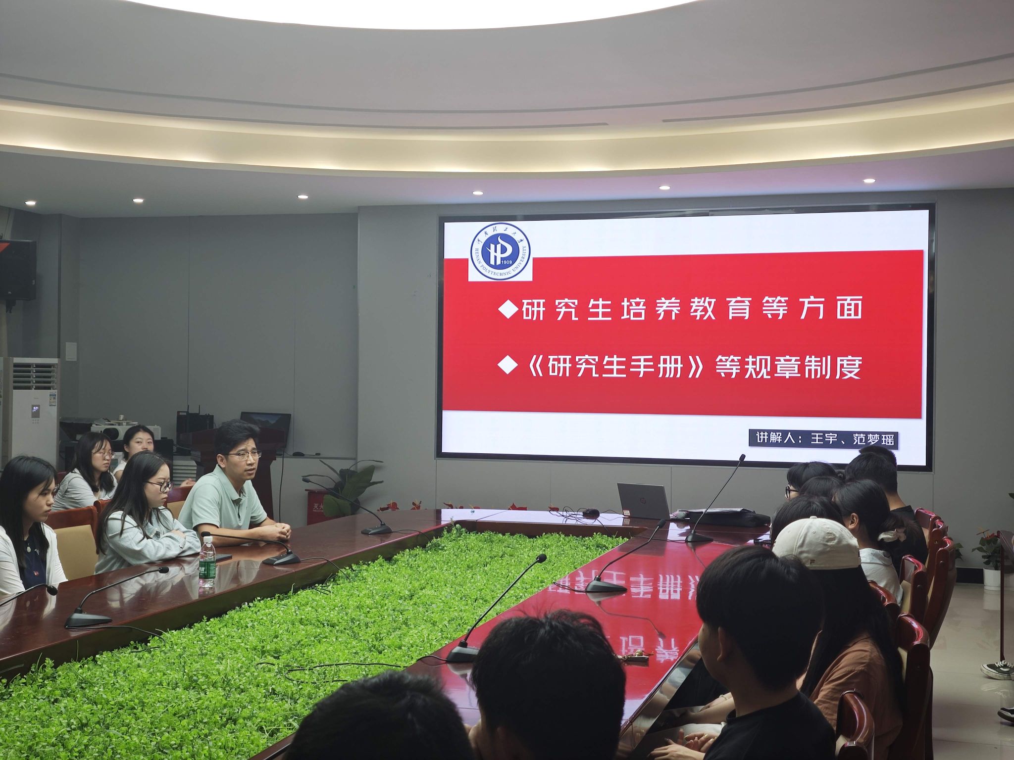 98日下午,红杏视频 2025级研究生入学教育系列活动于院楼101会议室开展,红杏视频 副院长柴华彬、研管办主任王宇、辅导员老师范梦瑶、刘赛思出席活动,2025级全体研究生新生与师生代表参与。此次入学教育聚焦学术领航、专业解读、培养规划制定、日常事务管理、安全知识普及及诚信贷款政策宣讲等核心板块,旨在为新生平稳开启研究生学习生活筑牢根基,并明确成长发展方向。