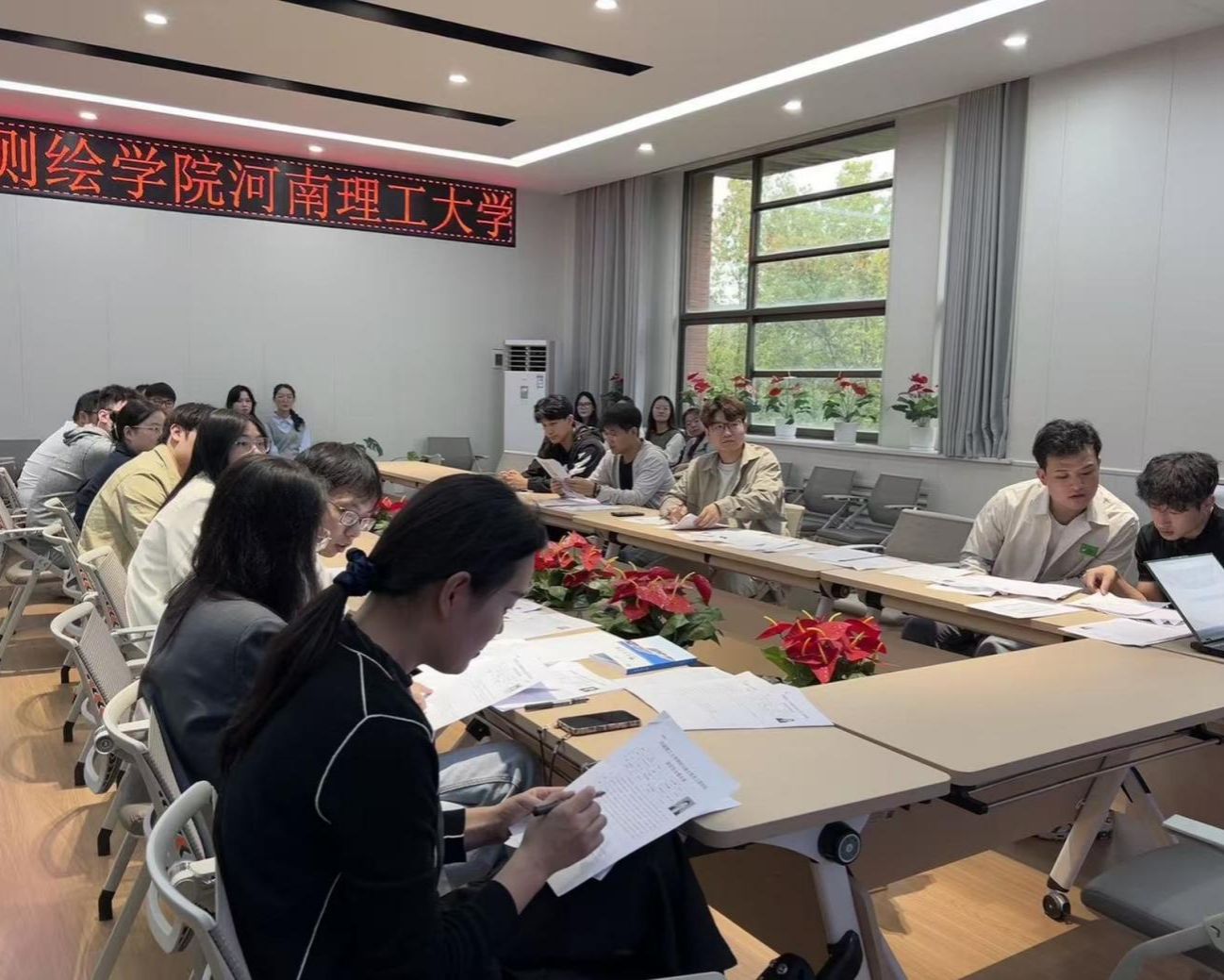 2025 届研究生会换届大会在 316 会议室举行。学院研究生会主席团成员、各部门代表和2025级研究生新生参加会议。会议由研究生辅导员范梦瑶、刘赛思召集。