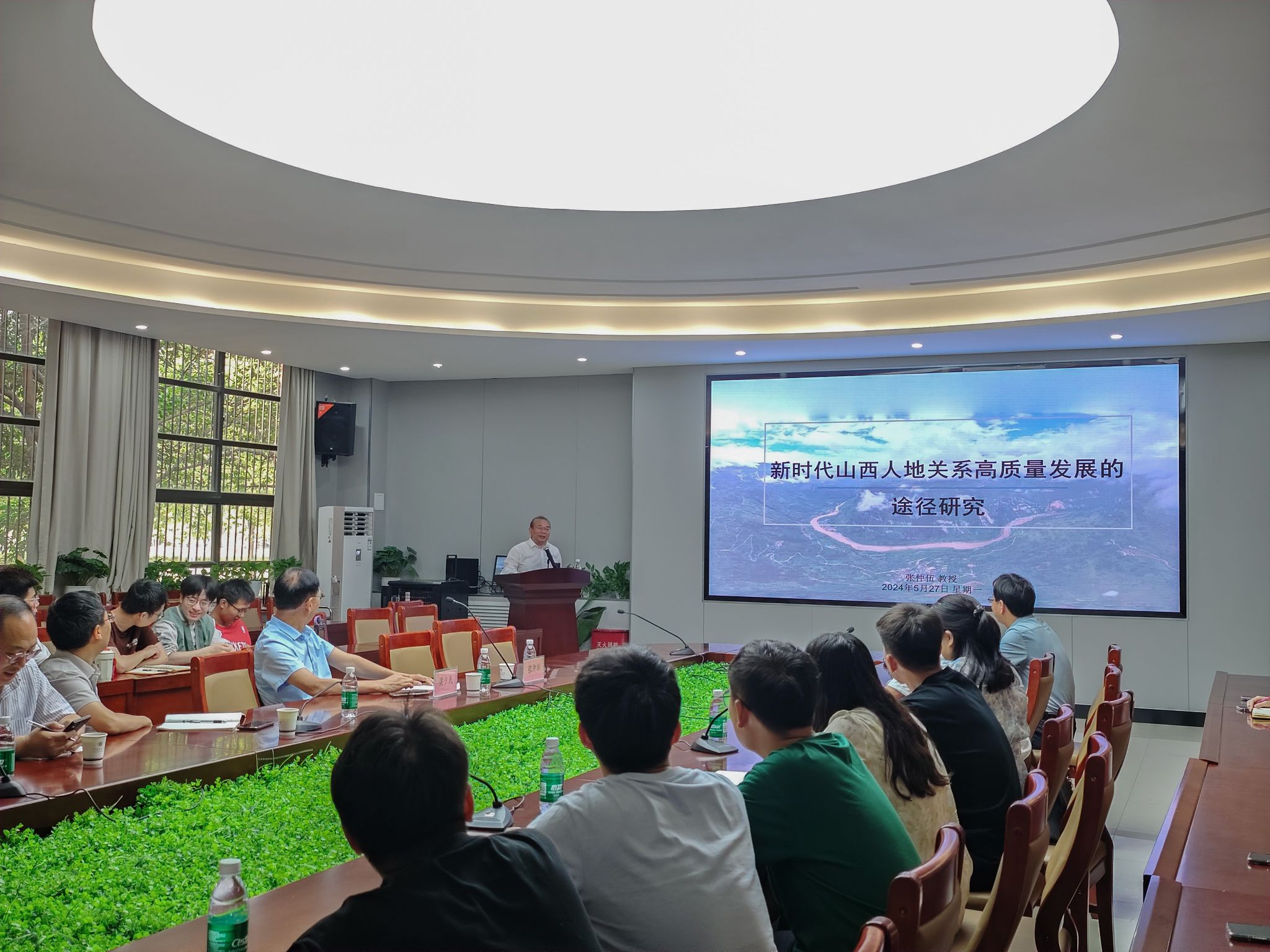 张仲伍教授做了题为《新时代山西人地关系高质量发展的途径研究》的专题讲座,结合四个阶段的演变历程,讲述了山西省人地关系的嬗变,并基于现有资源优势和面临的挑战,提出了对未来发展方向的思考。随后梁少民研究员主持开展了“黄河几字湾高质量发展”专题研讨会,结合河南省在黄河流域生态保护和高质量发展战略中的定位进行了详细专业的讲解,并与现场师生进行了互动交流。