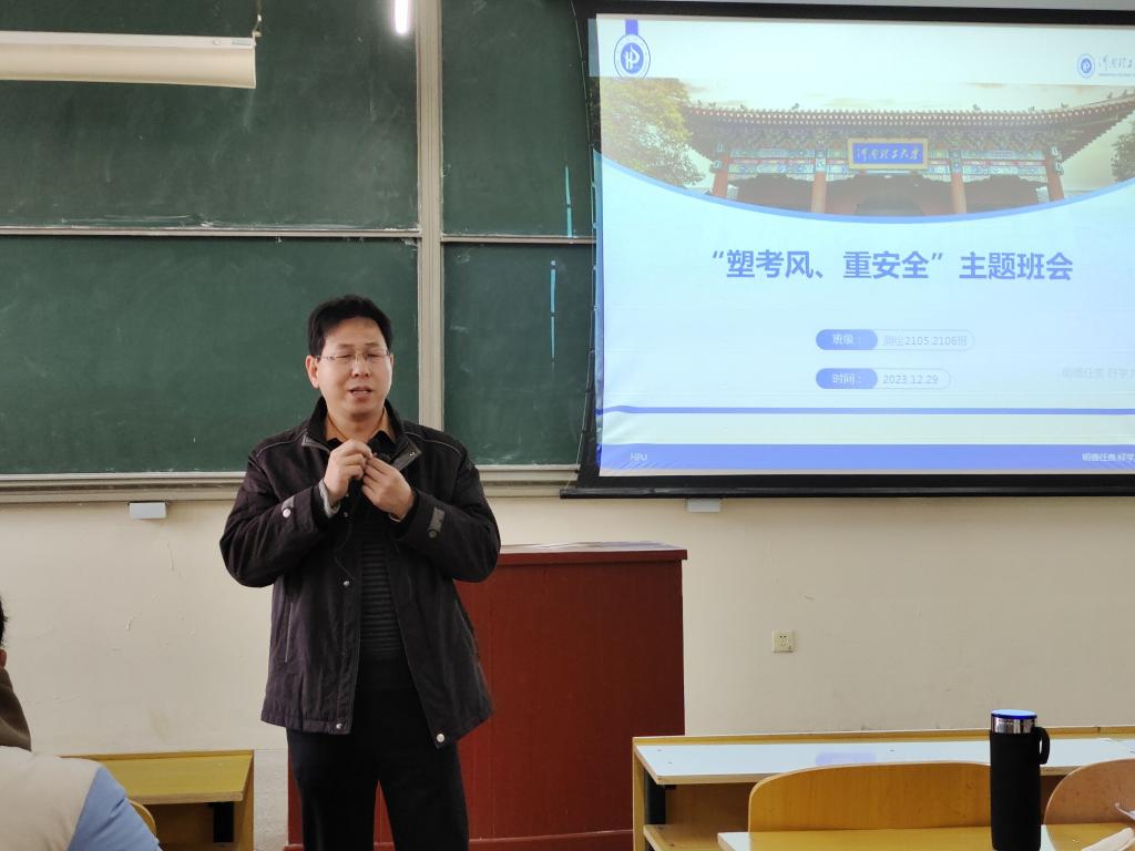 会上,副院长柴华彬结合自身经历阐述班级的班风、班纪对学生大学期间成长的重要性,强调同学们应以饱满的精神状态投入到期末考试复习中,遵守考场纪律,发扬诚信考试风气。随后,研管办主任谢玉娟再次提醒同学们切不可有侥幸心理,杜绝作弊行为,提醒学生要增强人身安全意识、提升自我保护能力,谨防各类诈骗行为。最后,班主任吴喜芳对本次主题班会进行总结,并倡导大家走出宿舍舒适区,提醒同学们加强身体锻炼,自律自强,提高学习效率;教育引导同学们要互帮互助,培养优良“班风、学风、考风”。