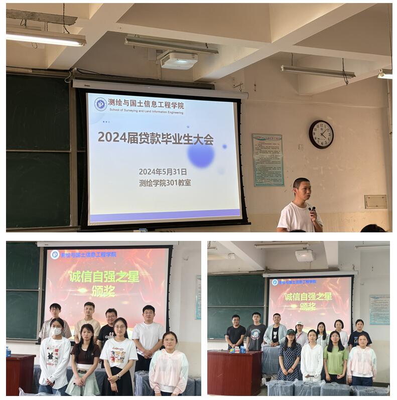 于5月31日下午在院楼301教室隆重举行了2024届贷款毕业生“诚信自强之星”表彰大会。本次会议由胡佰林老师主持,参会人员有2024届本科生、硕士生代表。