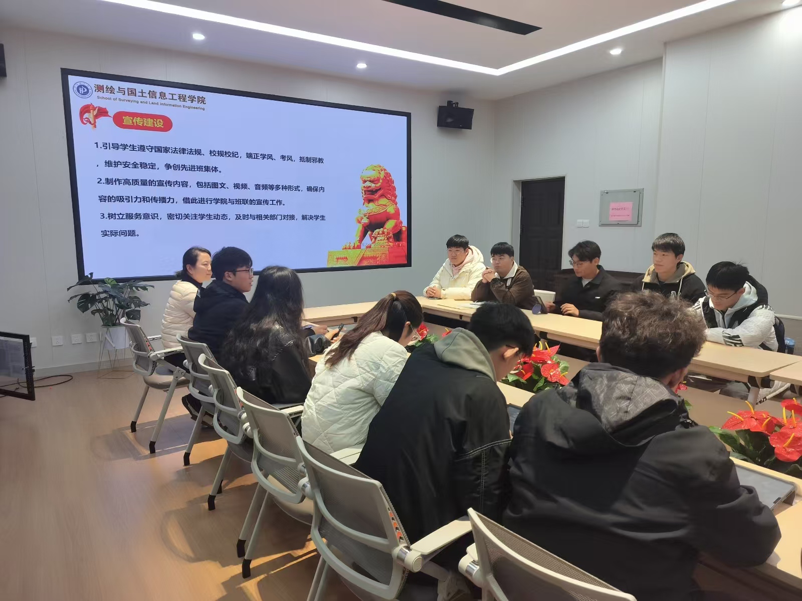 于院楼318会议室举行了2024年班长联席会换届大会。学工办副主任拓海燕、班长联席会主席闫文秀及班长联席会委员参与此次会议,会议由薛戈锐主持。