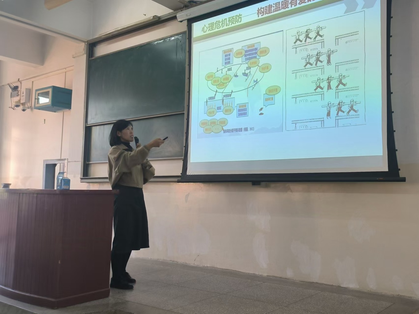 会上,胡丽霞详细讲解心理危机概念、心理健康水平判断方法、极端行为前期预兆等,提出了科学有效的心理危机预防方法,倡导共同建立心理健康防线,为心理专员对心理危机识别建立了坚实基础。她强调大学生心理健康非常重要,要多关注周围同学心理健康状况,及时发现心理问题,做到早发现早疏导。