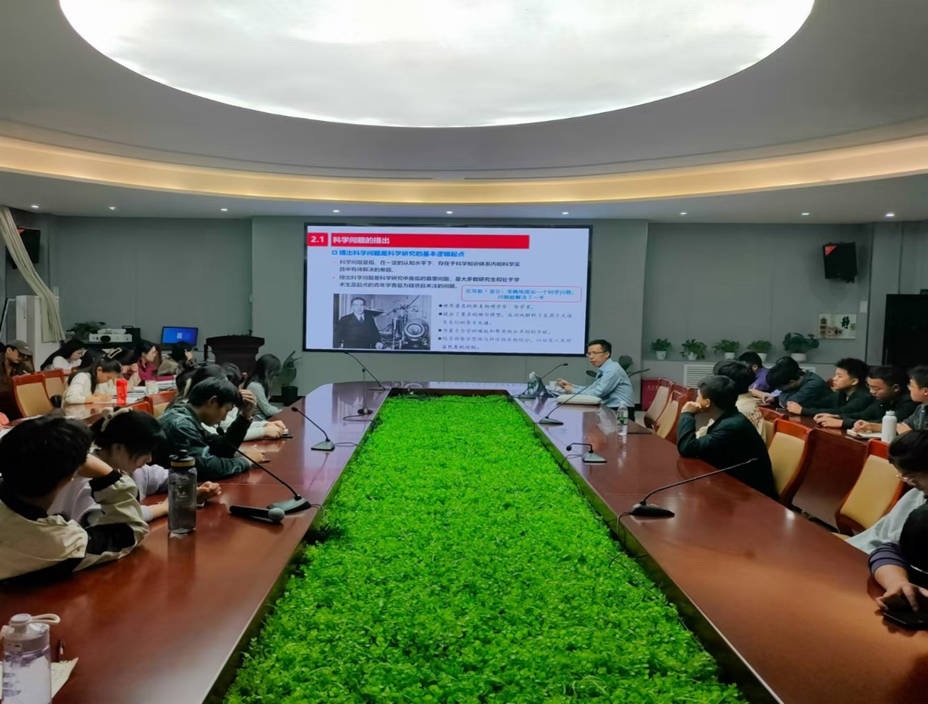 李春意教授首先阐述了在进行科技论文写作时,要清晰地理解科技论文写作的内涵,深入了解科技论文的类型及其相互之间的差别。其次,关于科技论文的选题,他由浅入深详细讲解,涵盖了  选题的要求、来源,特别强调了选题的关键核心——“创新”。接着,他着重强调科学问题的提出在科学研究中所具有的重要地位,并针对所提出的科学问题给予了切实可行的解决途径。最后,李春意教授紧扣科技论文写作结构和内容,为大家解释了学术论文时写作规范,具体要求与实用建议。李春意教授以其严谨的学术态度和丰富的知识储备赢得了现场师生的高度赞誉和普遍认可。